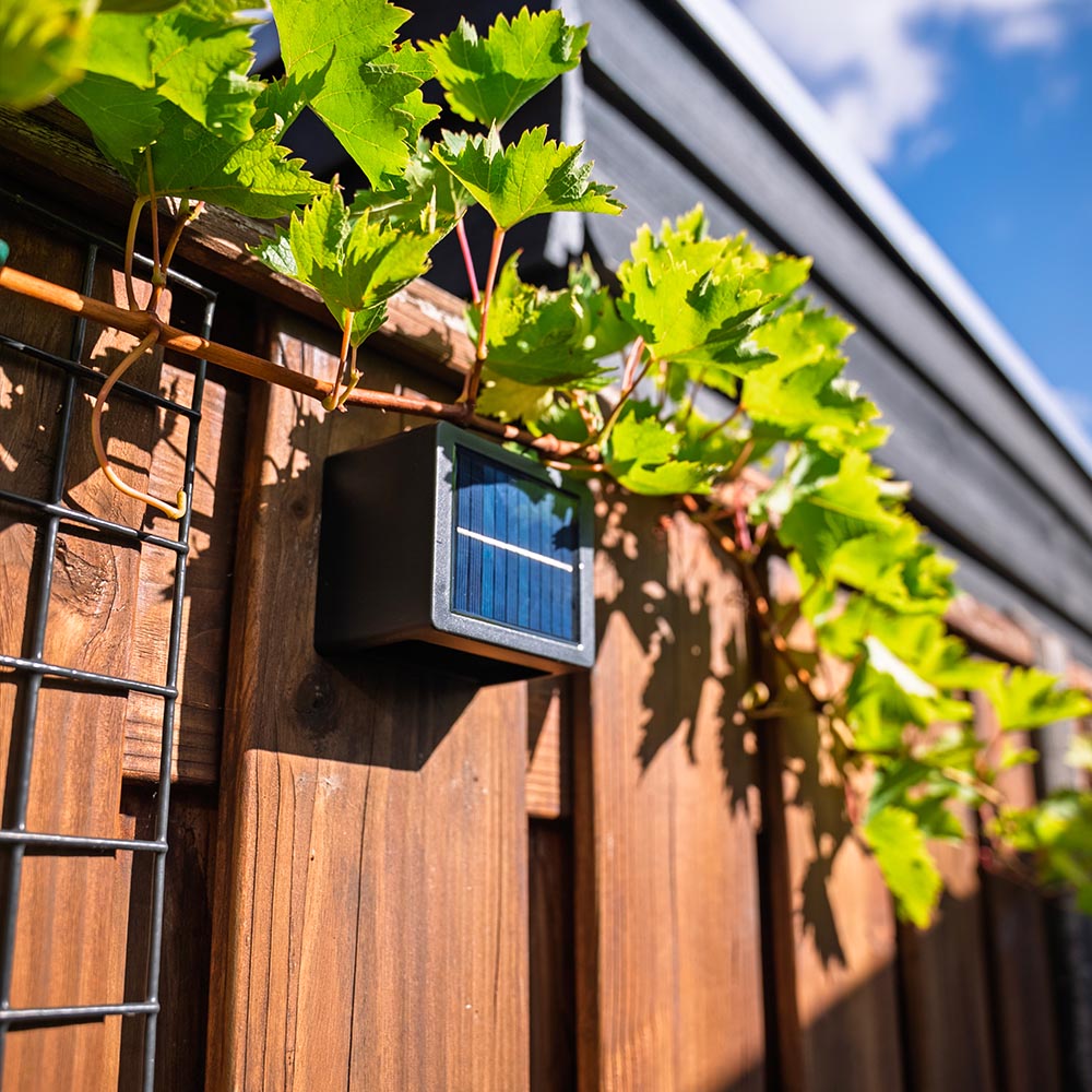 De lichtbundels van deze solar wandlamp zijn volledig traploos in te stellen tussen de 0 en 110 graden. Hierdoor creëer je zeer eenvoudig je eigen stijl wandlamp.