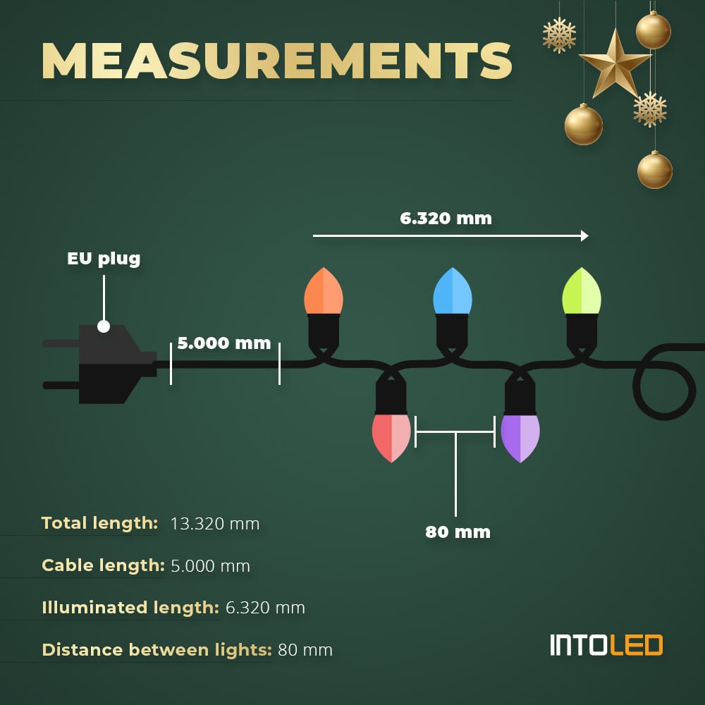 Op zoek naar een uniek LED lichtsnoer deze kerstdagen? Dan kies je voor dit lichtsnoer met 80 RGB kleurende LED lampjes. Het snoer heeft een totale lengte van 11,3 meter. Hiervan is 6,3 meter voorzien van sfeervolle LEDs en 5 meter stroomkabel. Het lichtsnoer is IP44 waterdicht en hierdoor geschikt voor zowel binnen als buiten.