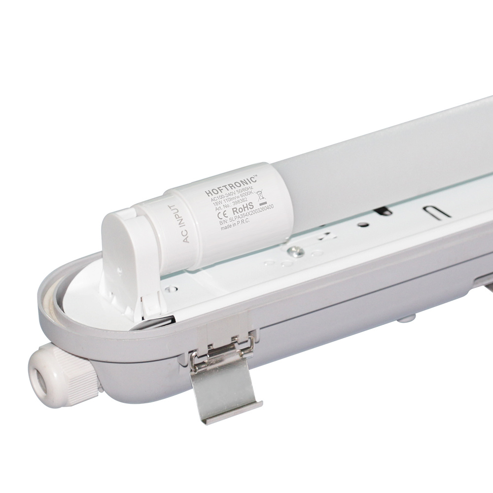 Deze set van 6 LED TL armaturen wordt geleverd inclusief T8 LED buizen. Het LED TL armatuur is IP65 waterdicht en gemaakt van polycarbonaat en ABS. De meegeleverde LED TL buis verbruikt slechts 18 Watt en produceert hiermee 1980 lumen aan licht. Door de combinatie tussen ABS en Polycarbonaat wordt de lamp niet poreus door lange blootstelling aan chemische dampen. Dit maakt de lamp ook geschikt voor plaatsing in fabrieken en autograrages. De toegepaste LED buizen hebben een powerfactor van 0,9.