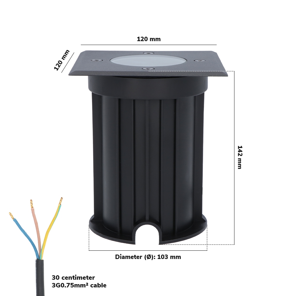 De grondspot heeft een stralingshoek van 38° en wordt geleverd inclusief een 4 Watt lichtbron die dimbaar is. En geen zorgen: deze is altijd vervangbaar. Omdat de schroeven aan de bovenkant zitten, hoef je bovendien niet de hele spot uit de grond te halen bij het vervangen van een lampje. De installatie is eenvoudig en met behulp van waterdichte kabelverbinders kun je meerdere spots aan elkaar koppelen.