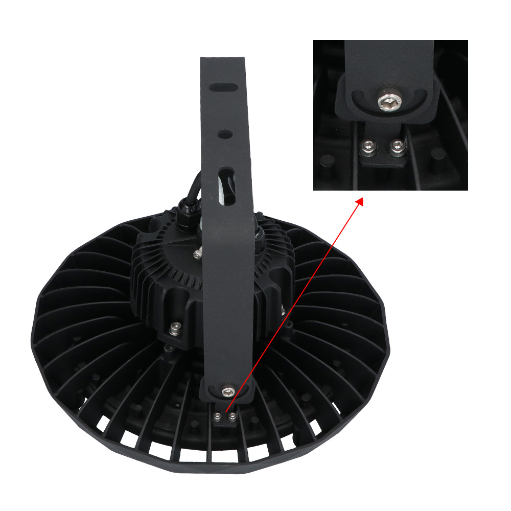 Kantel je High Bay met behulp van deze beugel gemakkelijk in de gewenste richting. Zo zit je nooit meer zonder licht, want het licht schijnt precies daar waar het nodig is.