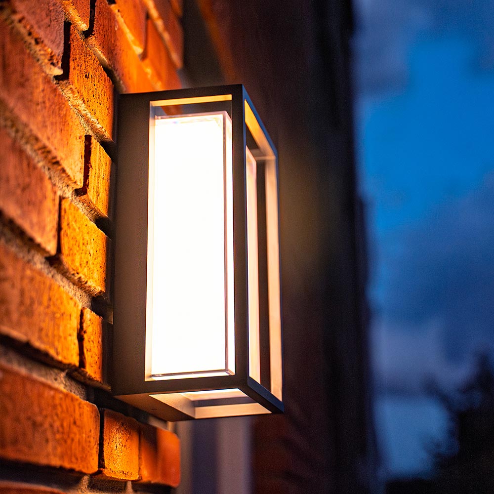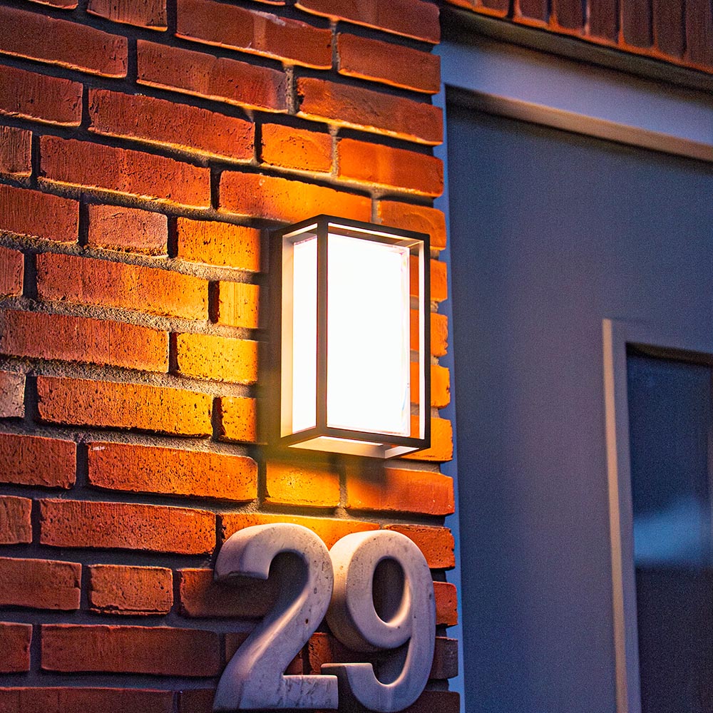 De moderne wandlamp is gemaakt van onderhoudsvrij aluminium, afgewerkt met een vochtbestendige poedercoating. De rechthoekige wandlamp schijnt een 3000K warm wit licht. De lamp is IP54 waterdicht en hierdoor geschikt voor zowel binnen als buiten. De Brandon verbruikt slechts 12 Watt om 1200 lumen aan licht te produceren. Hierdoor verlicht de buitenlamp eenvoudig grote oppervlaktes en tuinen. Het grote voordeel van deze wandlamp is dat het licht naar voren schijnt.