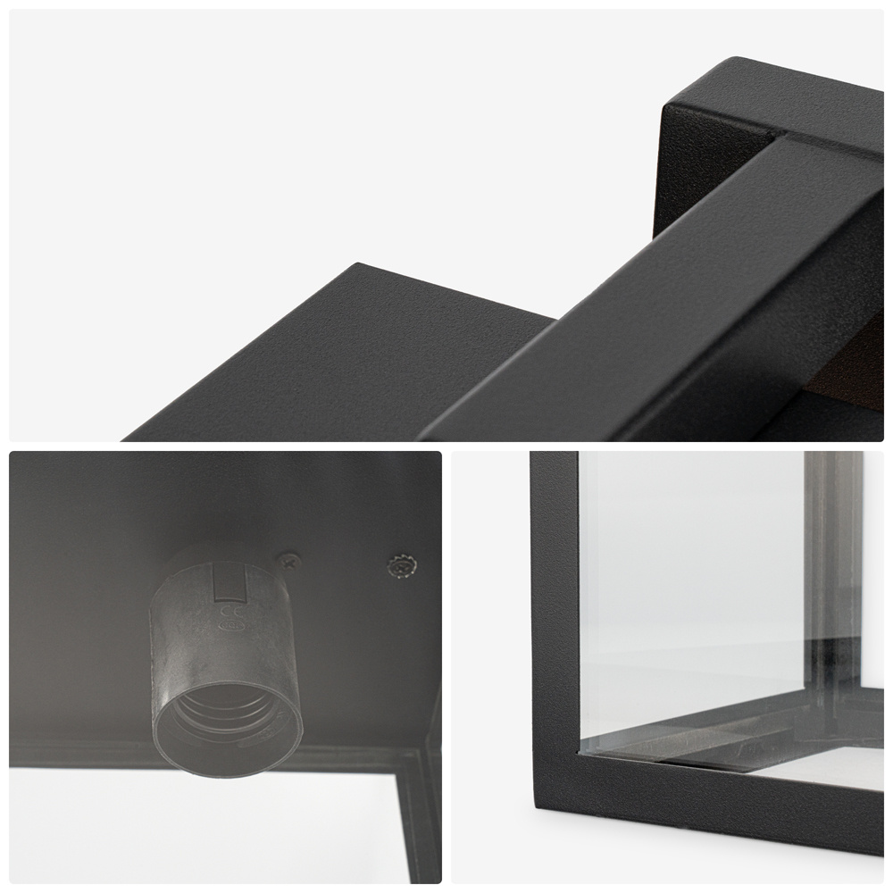 De wandlamp is afgewerkt met een zwarte vochtbestendige en UV-bestendige AKZO-Nobel poedercoating. Hierdoor geen verkleuring door zonlicht of afbladderen van verf door vocht.