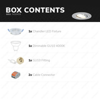 Deze Chandler LED inbouwspot is zowel kantelbaar als dimbaar. Dit maakt de spot geschikt voor zowel sfeerverlichting als accentverlichting. De Chandler wordt geleverd inclusief een LED GU10 spot in de neutraal witte lichtkleur 4000K. De lichtbron van de inbouwspot is eenvoudig wisselbaar, hierdoor hoef je bij een defecte lichtbron geen nieuwe inbouwspot te installeren. De Chandler is dimbaar met een geschikte LED dimmer.