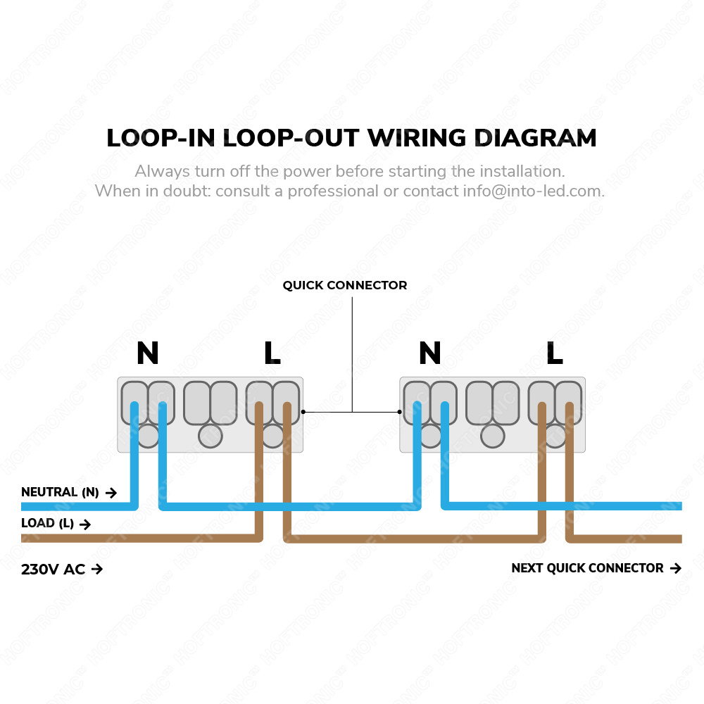 Deze driver bevat loop in, loop out quick connector aansluitingen. Hierdoor kun je zonder gereedschap meerdere Rome inbouwspots aan elkaar koppelen.