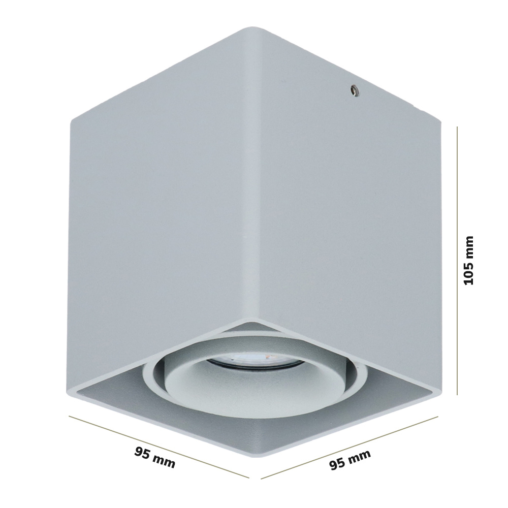 Vierkante LED Opbouwspot Esto - Kantelbaar - Dimbaar - 2700K warm wit - 4 Watt 345 lumen - GU10 - Plafondspot - Voor binnen - Vervangbare afdekring - Grijs