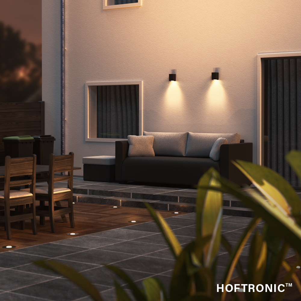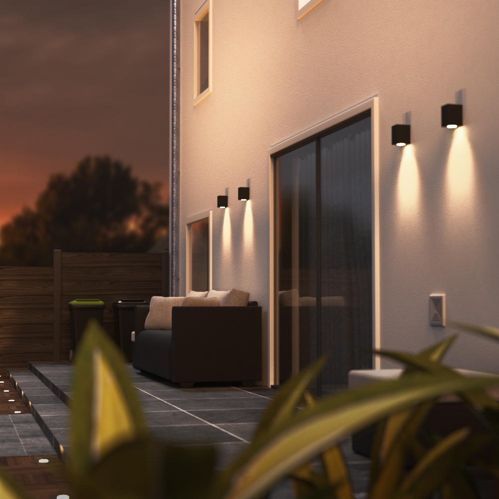 Deze set van 2 Marion wandlampen wordt geleverd inclusief draadloze dimmer en afstandsbediening. Hierdoor kun je deze lampen volledig bedienen van een afstand. De wandlampen zijn IP64 Waterdicht en gemaakt van onderhoudsvrij aluminium. Hierdoor gaan de lampen niet defect door vocht en/of stof. De lampen schijnen een sfeervol warmwit licht van 2700 graden kelvin. De perfecte lichtkleur voor het sfeervol en warm uitlichten van tuin en terras. De Marion schijnt zijn licht alleen naar beneden.