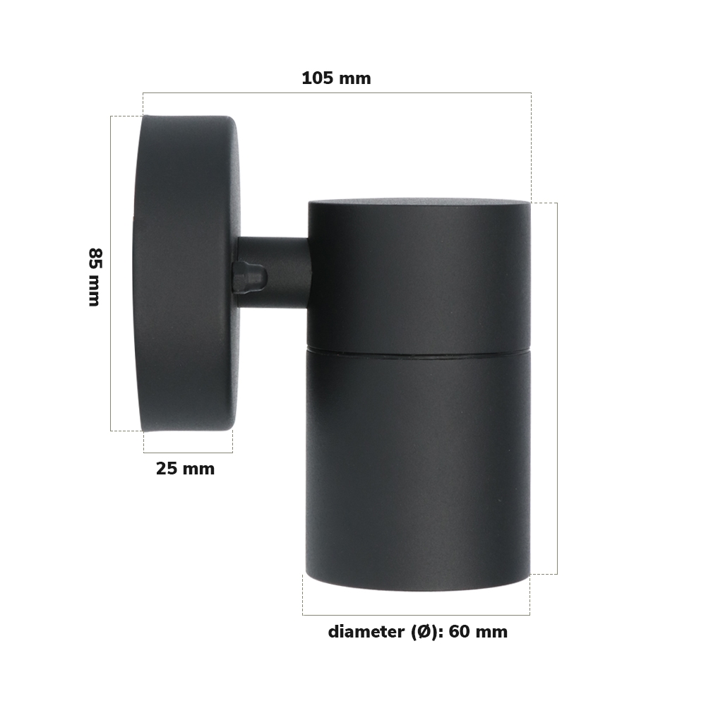 Mason - LED Wandlamp - IP44 Waterdicht - 4 Watt 345 Lumen - GU10 - 6500K Daglicht Wit - Dimbaar - Voor binnen en buiten - Downlight - Zwart