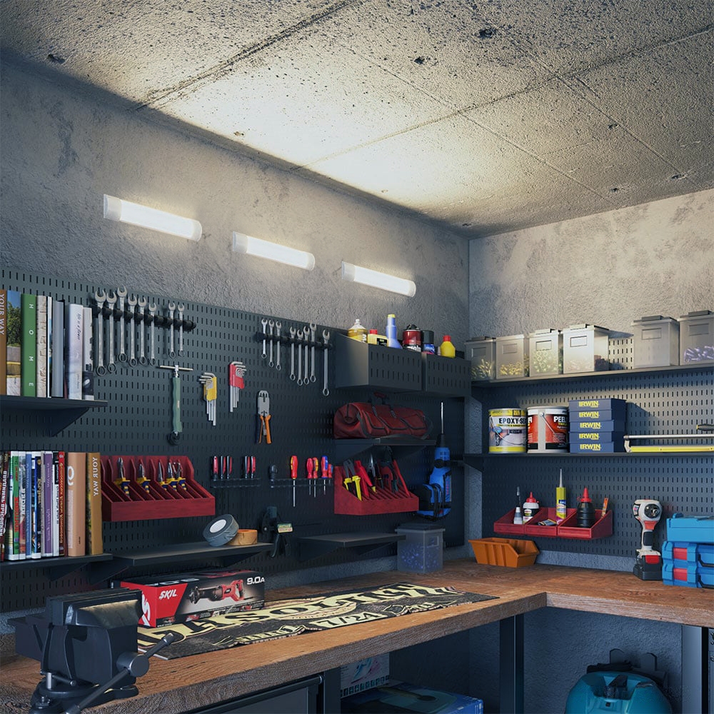Deze LED batten hebben een opbouwhoogte van slechts 2,5cm. Dit maakt de LED batten zeer plat en geschikt als onderbouwverlichting. Denk aan boven een werkbank of onder een plank.