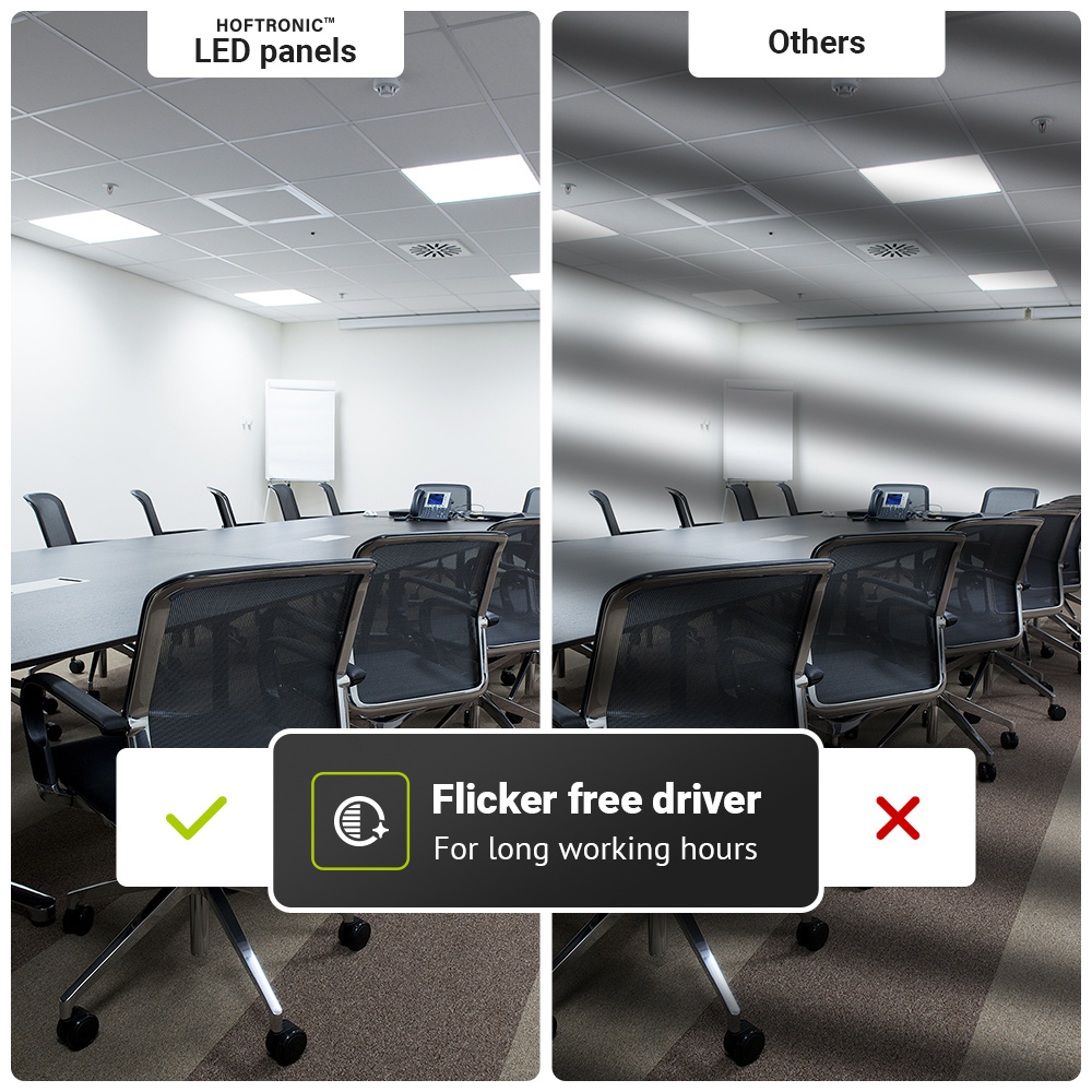 Op de hoogste stand levert het paneel maar liefst 4500 lumen - en dat bij een veel lager verbruik dan traditionele 36 of 40 watt panelen. Zo bespaar je aanzienlijk op energie zonder in te leveren op lichtkwaliteit. Het warm witte licht van 3000K zorgt voor een zachte, aangename sfeer en is daarmee ideaal voor ruimtes waar comfort en gezelligheid centraal staan, zoals kantines, ontvangstruimtes of wachtruimtes.