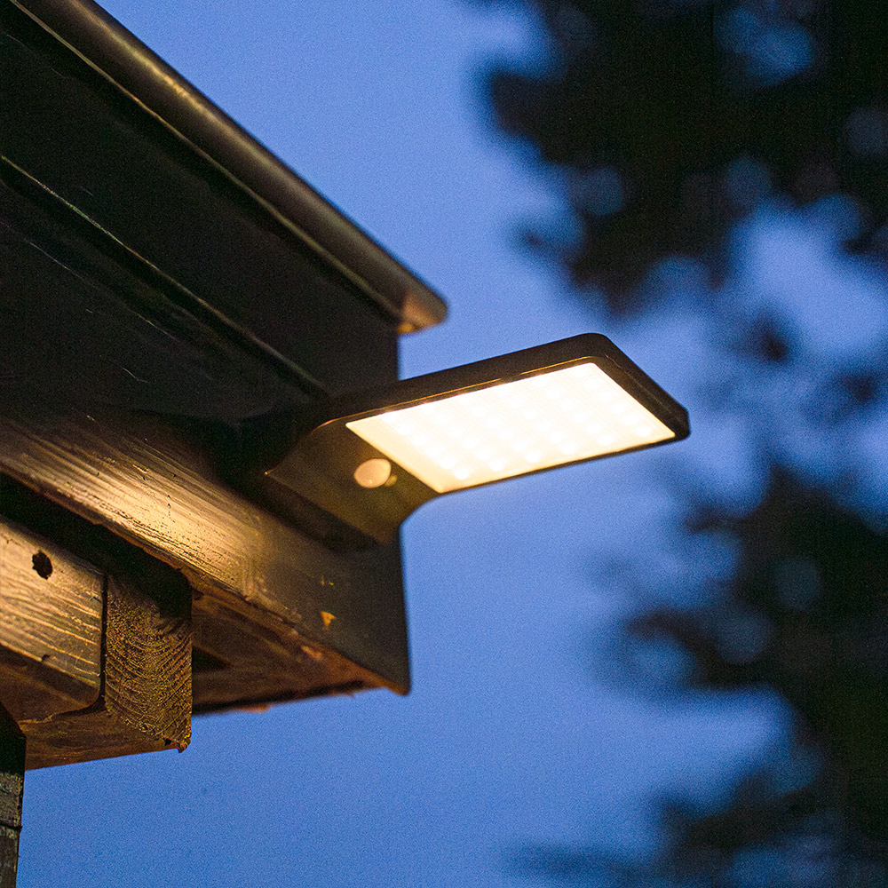 Deze solar wandlamp is voorzien van 36 LED chips. Dit zorgt ervoor dat de solar lamp extra veel licht opbrengst. Geschikt voor het verlichten van grote buitenruimtes.