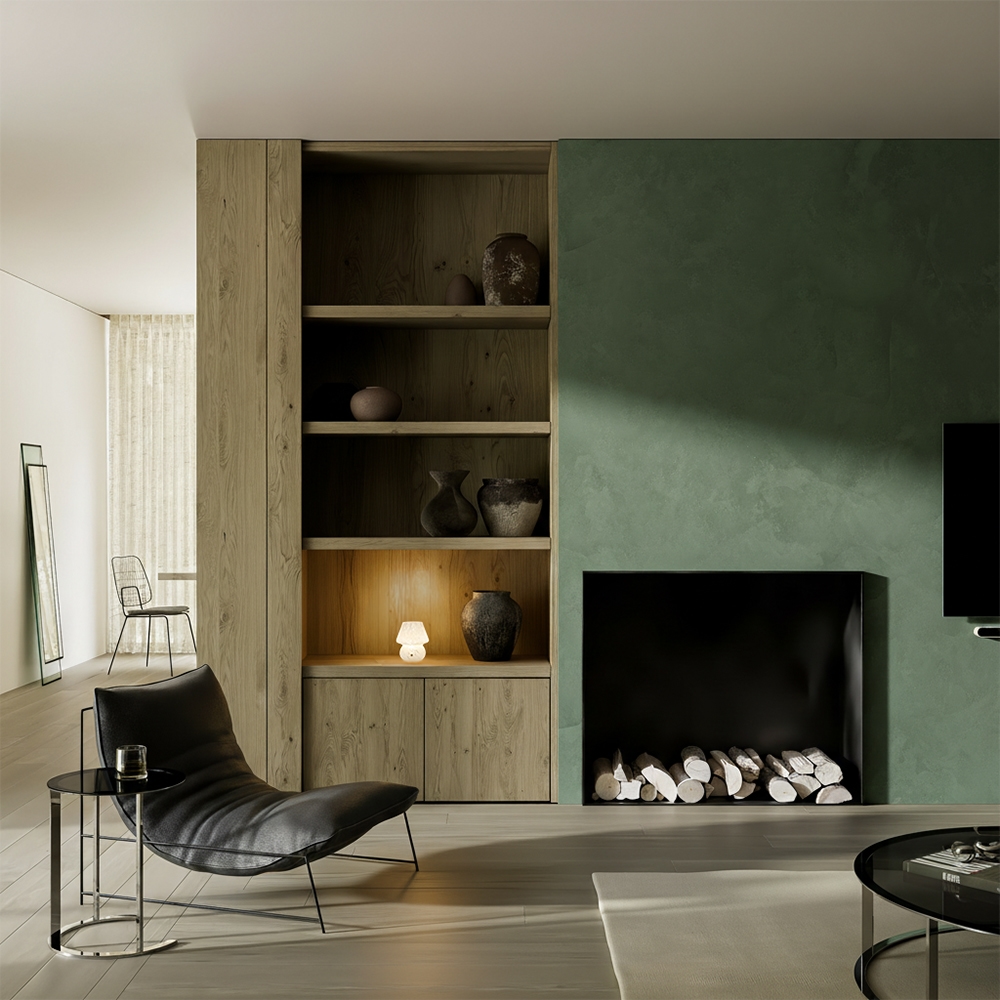 Het licht wordt gelijkmatig door het glas verspreid en laat de structuur van het materiaal mooi naar voren komen. Bovendien bepaal je met de ingebouwde dimmer zelf de sfeer, van zacht achtergrondlicht tot iets meer aanwezigheid.