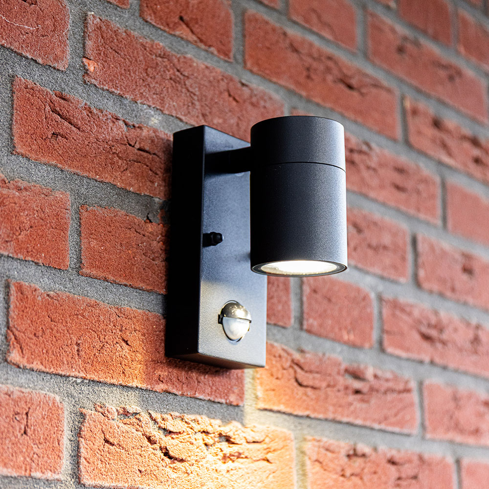Mason LED Wandlamp - Bewegingsmelder en schemerschakelaar - GU10 - 4000K - 4W 345lm - IP44 - Zwart