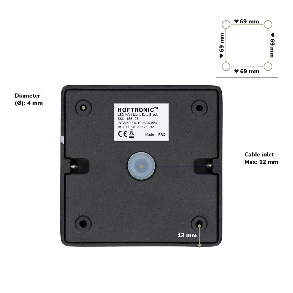 De opbouwspot beschikt over een GU10 fitting en wordt geleverd exclusief lichtbron. Hierdoor kun je zelf heel eenvoudig de lichtkleur, stralingshoek en lichtopbrengst van de opbouwspot bepalen. Bij de Esto ontvang je alle benodigde materialen om de opbouwspot te monteren.