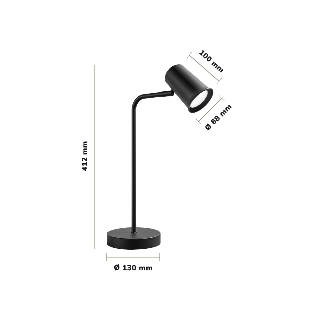 Riga LED Tafellamp - Kantelbaar en draaibaar - ingebouwde dimmer - GU10 - Zwart