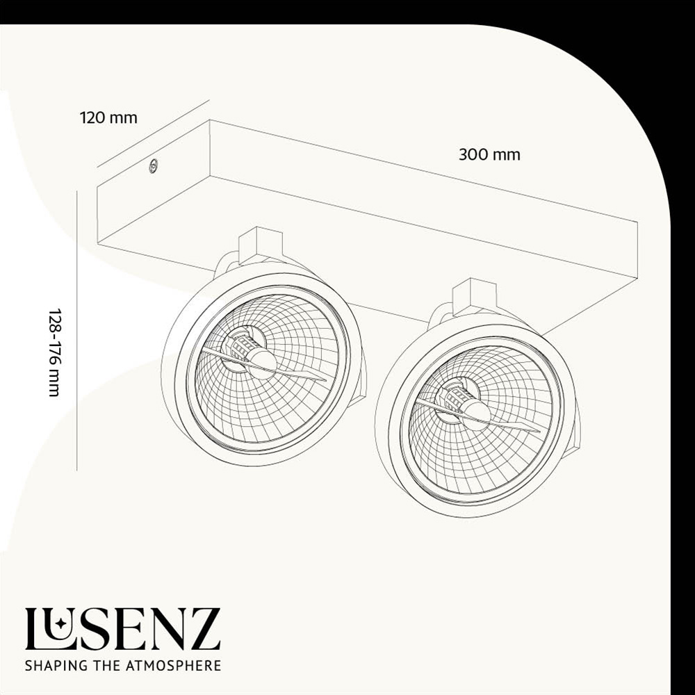 Saturno nero II by LUSENZ - 2-lichts plafondspot met kantelbare matzwarte basis en armatuur
