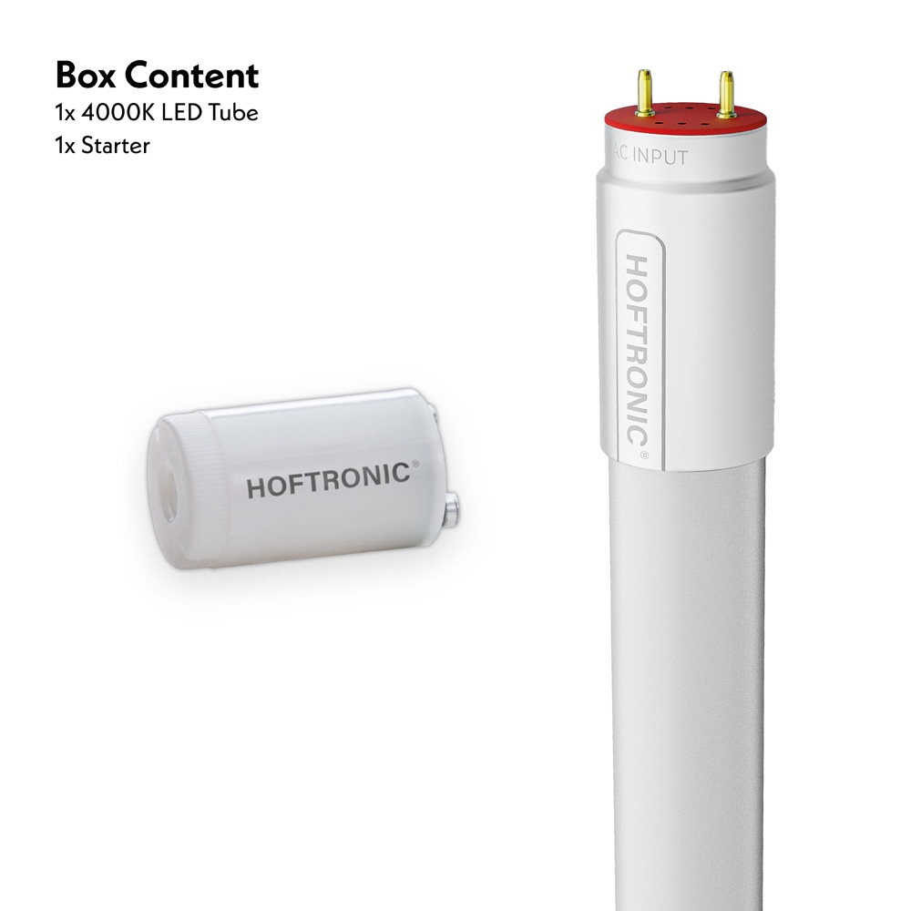 Deze LED buis schijnt neutraal wit licht van 4000K, vervangt de traditionele 840 lichtkleur één op één en is ideaal voor kantoren, werkplaatsen en showrooms.