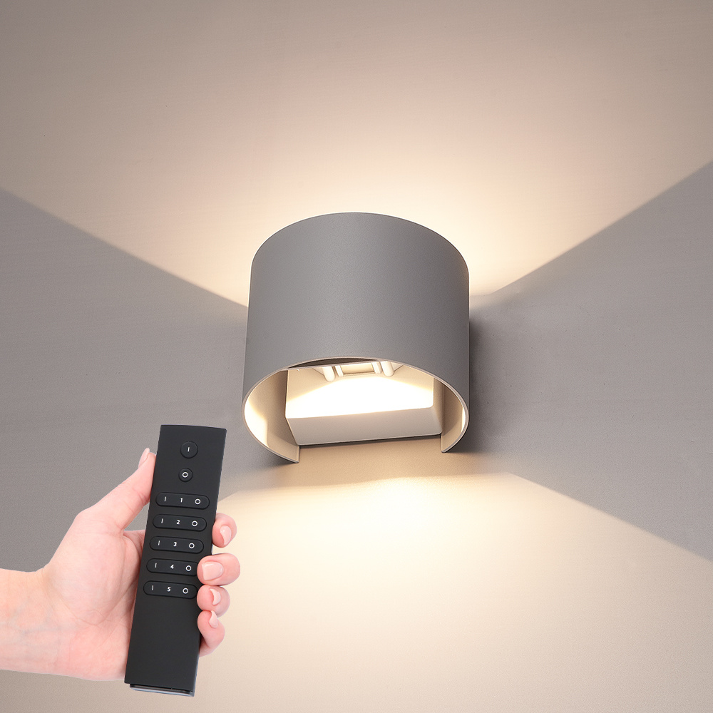 Set van 4 dimbare LED Wandlampen Denver - grijs - 6 Watt 660 lumen - 3000K - Up & Down light - IP54 waterdicht - Incl. dimmer met afstandsbediening