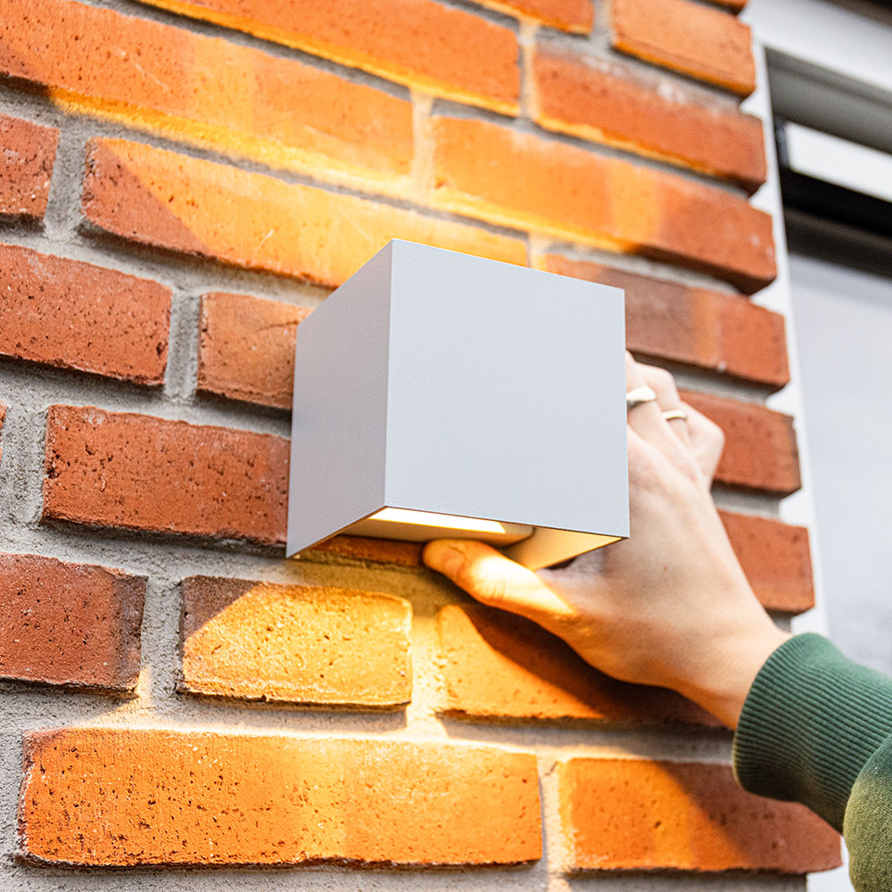 De Kansas LED wandlamp heeft een moderne stijl met een kubusvorm, waardoor hij gemakkelijk in elke omgeving te plaatsen is. De wandlamp is gemaakt van onderhoudsarm aluminium dat bestand is tegen de zwaarste weersomstandigheden. De IP54-beschermingsklasse van de wandlamp betekent dat hij ook buiten of in vochtige ruimtes zoals badkamers kan worden gebruikt. Dit maakt deze wandlamp een van de meest veelzijdige lampen in het assortiment die zich helemaal aanpast aan jouw wensen.