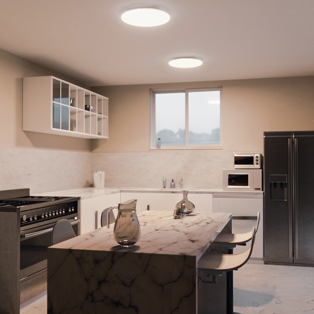 De plafondlamp verbruikt 30 Watt en produceert hiermee 3000 lumen aan licht. Door deze hoge lichtopbrengst komen ook donkere kleuren goed tot hun recht.