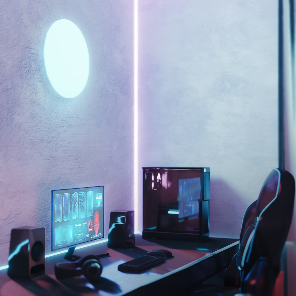 Verbind de plafondlamp met de HOFTRONIC app voor geofencing, stembesturing, groeperen, Weather control, 16,5M kleuren, bioritme en dimmen.