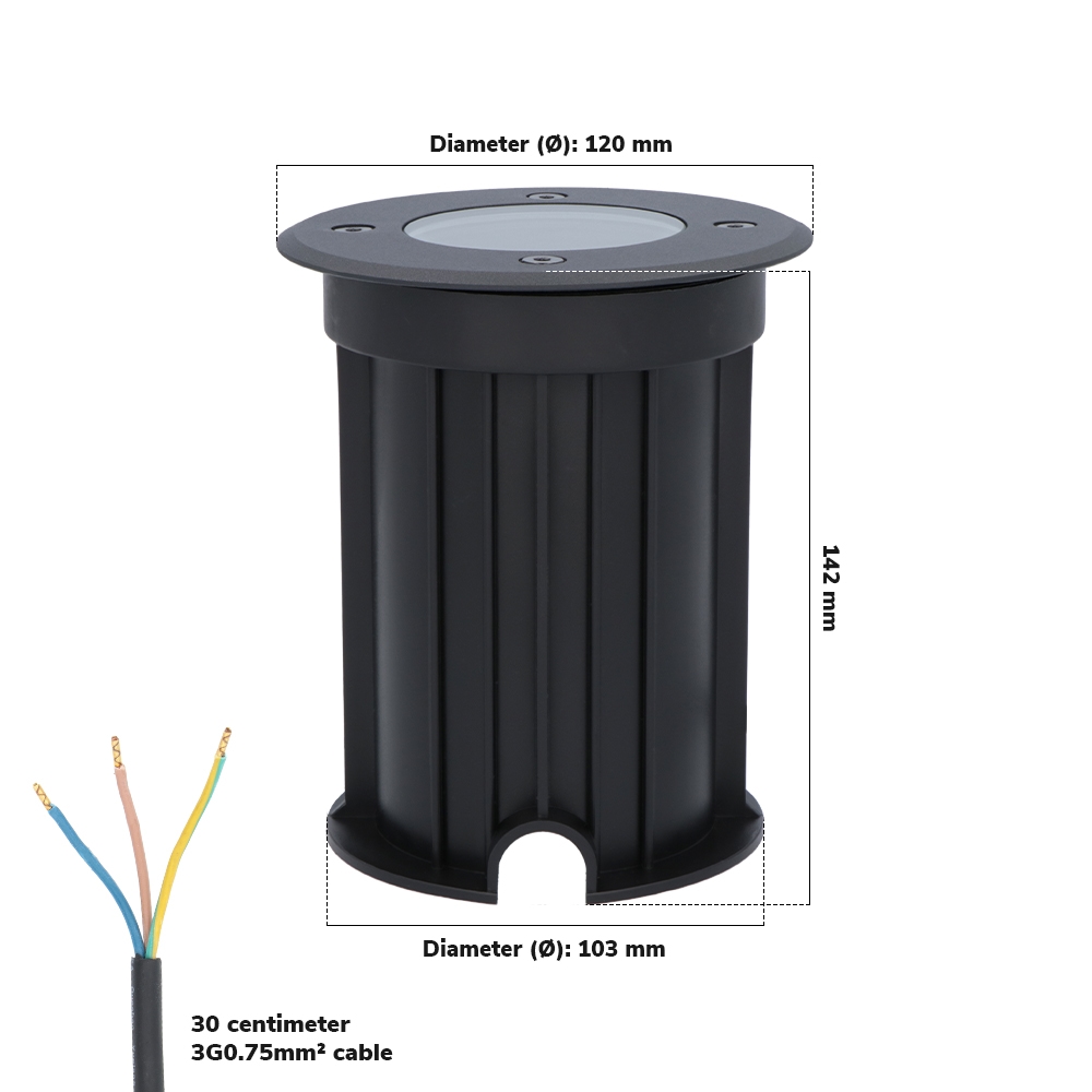 Der stylische Bodenstrahler ist dimmbar und erzeugt mit 4 Watt 345 lumen Licht. Die bringt er i. d. R. für 6 Jahre (15.000 Brennstunden). Maisy hat einen Durchmesser von 12 cm und eine Einbautiefe von knapp 14 cm, 3 Jahre Garantie und ein austauschbares GU10-Leuchtmittel. Maisy tut dir noch einen Gefallen: Er ist total leicht zu installieren und mit weiteren Maisy-Bodenstrahlern zu verbinden. Dafür empfehlen wir dir unsere wasserdichten Kabelverbinder. Viel Spaß mit dem schönen Maisy!
