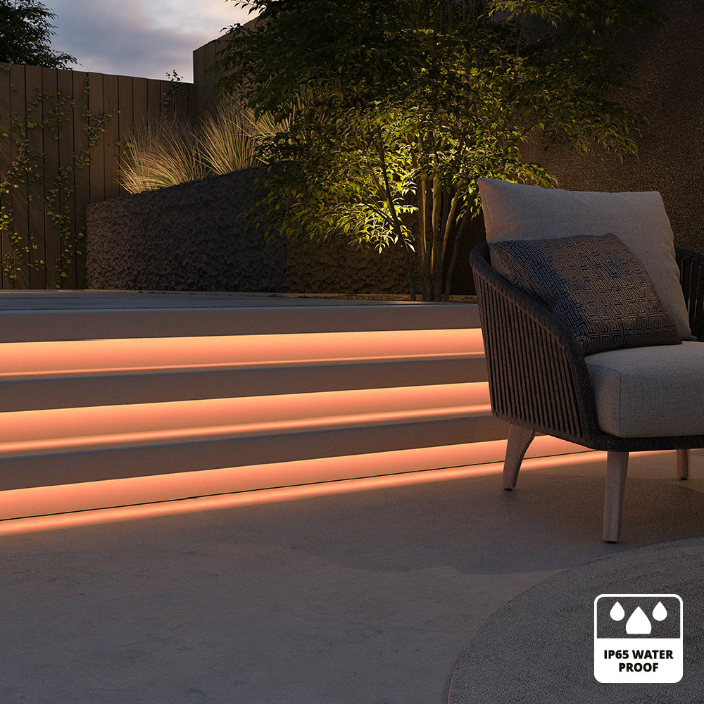 Bitte beachte, dass die maximale Betriebsdauer 12 Stunden pro Tag beträgt, um Überhitzung und eine verkürzte Lebensdauer zu vermeiden. Bei Verwendung im Außenbereich muss die Endkappe mit dem mitgelieferten Kleber verklebt werden. Dieser muss anschließend 24 Stunden trocknen (optional kannst du zusätzlich wasserdichtes Klebeband anbringen). So machst du den LED Streifen IP65 wasserdicht.
