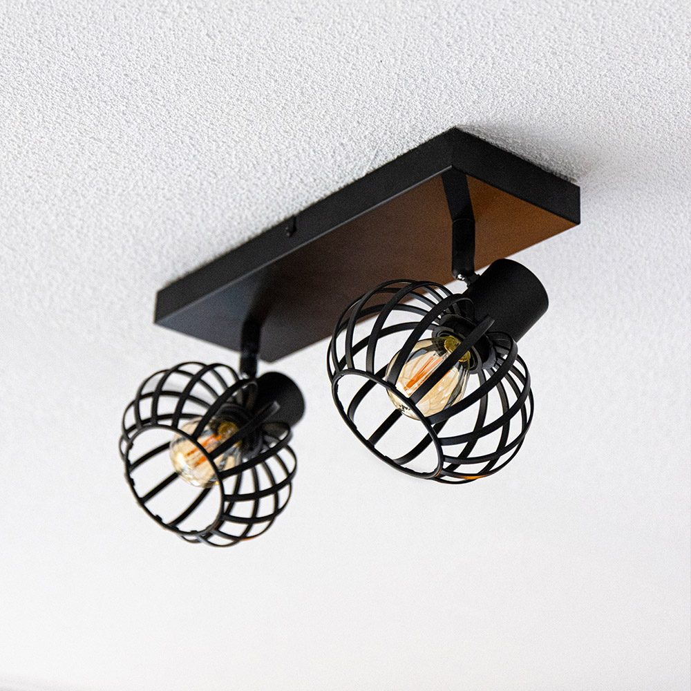 Petal - LED-Deckenleuchte - 2 Spots - E14-Fassung - schwenkbar und drehbar - schwarz