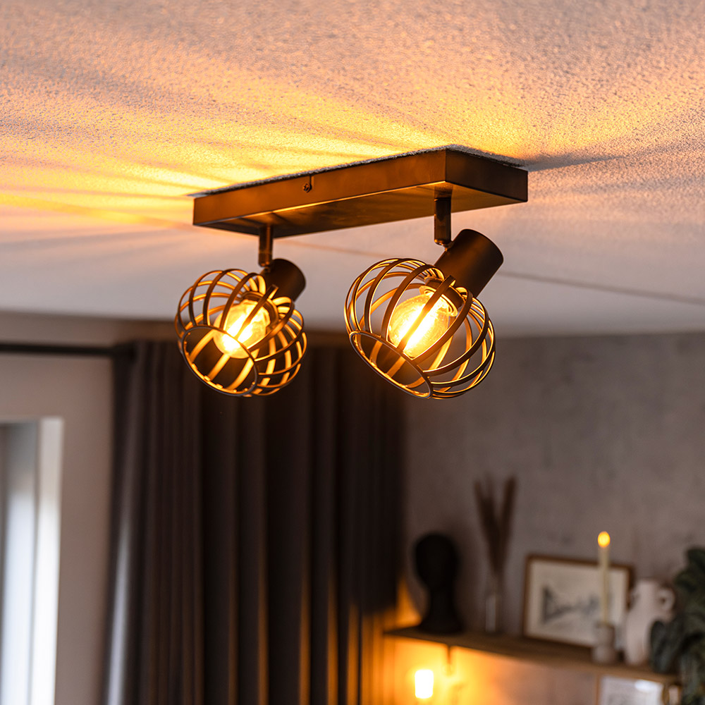 Der Deckenstrahler Petal ist ein echter Hingucker. Diese moderne Lampe hat zwei Strahler, die sowohl schwenkbar als auch drehbar sind. Der Petal hat E14-Fassungen und wird ohne Leuchtmittel geliefert. So kannst du deine Glühbirnen selbst aussuchen und ganz einfach austauschen, wenn's mal nötig ist. Die Deckenleuchte ist aus Metall und hat eine mattschwarze Oberfläche. Die Petal gibt's auch als Deckenleuchte mit 3 Spots und mit einer runden Deckenplatte mit 3 Spots.