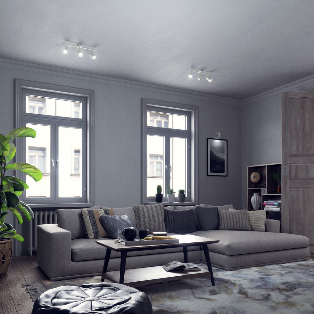 Die Lampe besteht aus pflegeleichtem Aluminium und ist zum Schutz vor Staub pulverbeschichtet. Die Installation ist einfach mit der 9 cm langen Montageplatte, die über fast alle Mittelsteckdosen passt. Die GU10-Leuchtmittel lassen sich leicht austauschen, so dass du auch später noch die Lichtfarbe ändern kannst.