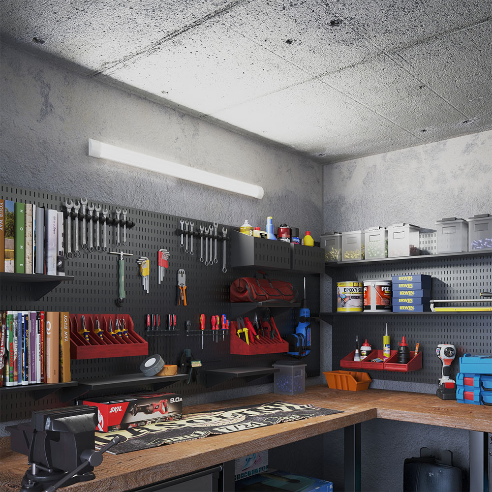 LED-lampan ger ett dagsljusvitt ljus på 6400 grader Kelvin. Denna exakta ljusfärg är idealisk för belysning av ladugårdar, garage, kök och verkstäder.