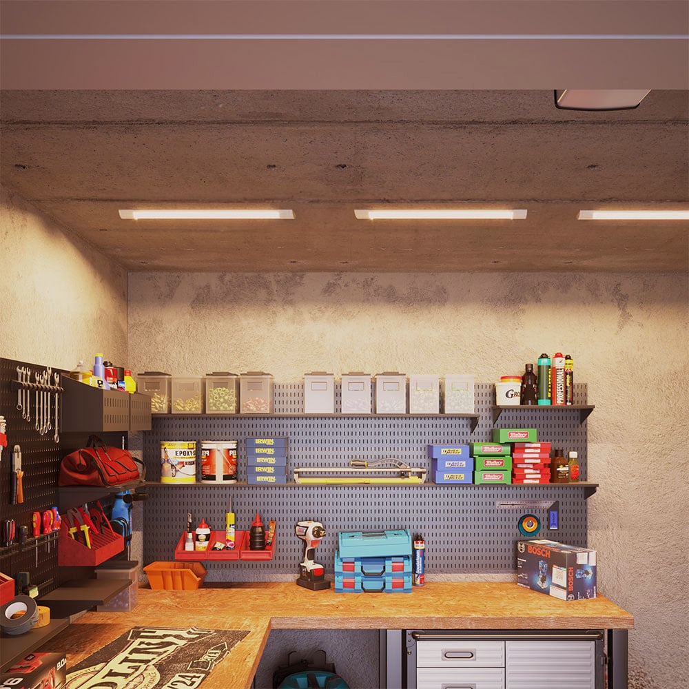 Denna LED-list har en installationshöjd på endast 2,5 cm. Detta gör LED Batten mycket platt och lämplig för belysning under skåp. Tänk ovanför en arbetsbänk eller under en hylla.