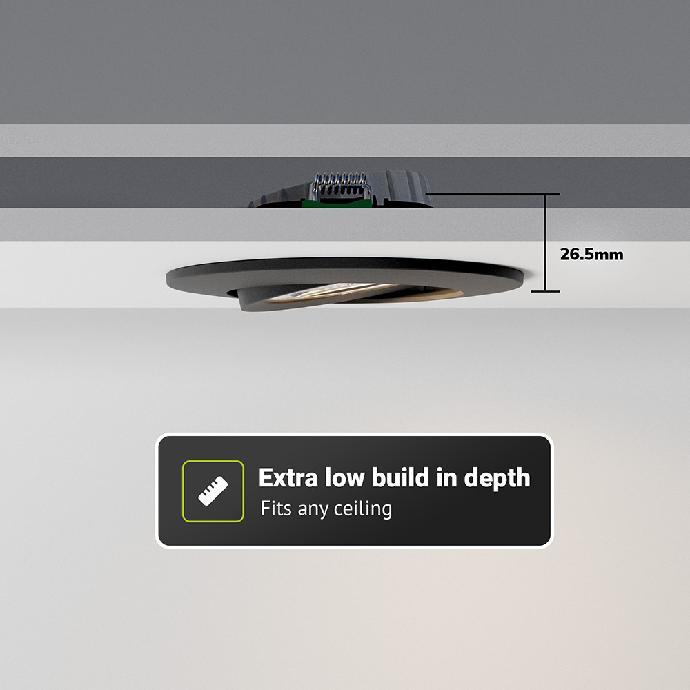 Set med 10 Prado Dimbar LED Inbyggnadsspot - 6 Watt 570 lumen - CCT Justerbar Ljussfärg 2700K/4000K/6000K - Låg inbyggnadsdjup 27mm - Rund - Vinklingsbar - IP20 för inomhusbruk - Svart