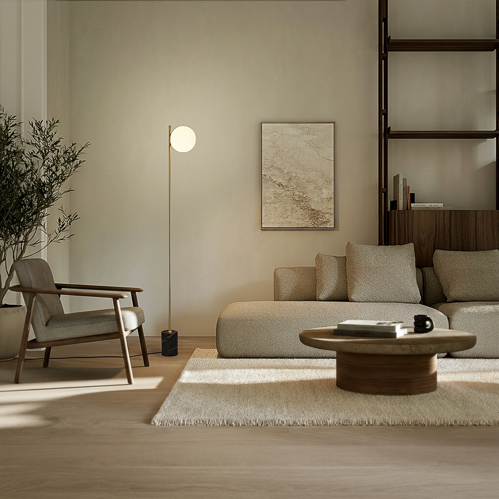 Floor lamp Elara marmo l - With a handmade opal glass globe and marble base - Floats through the room like the moon - For indoor use