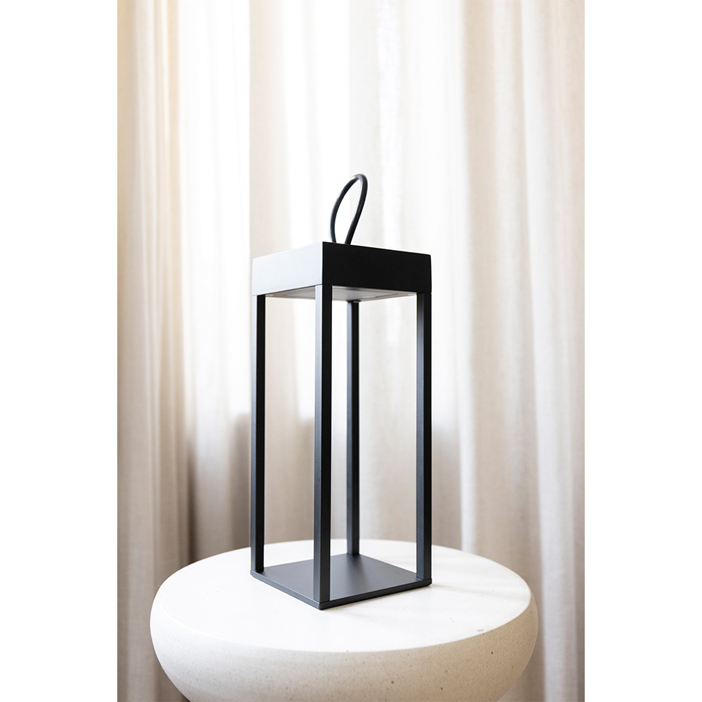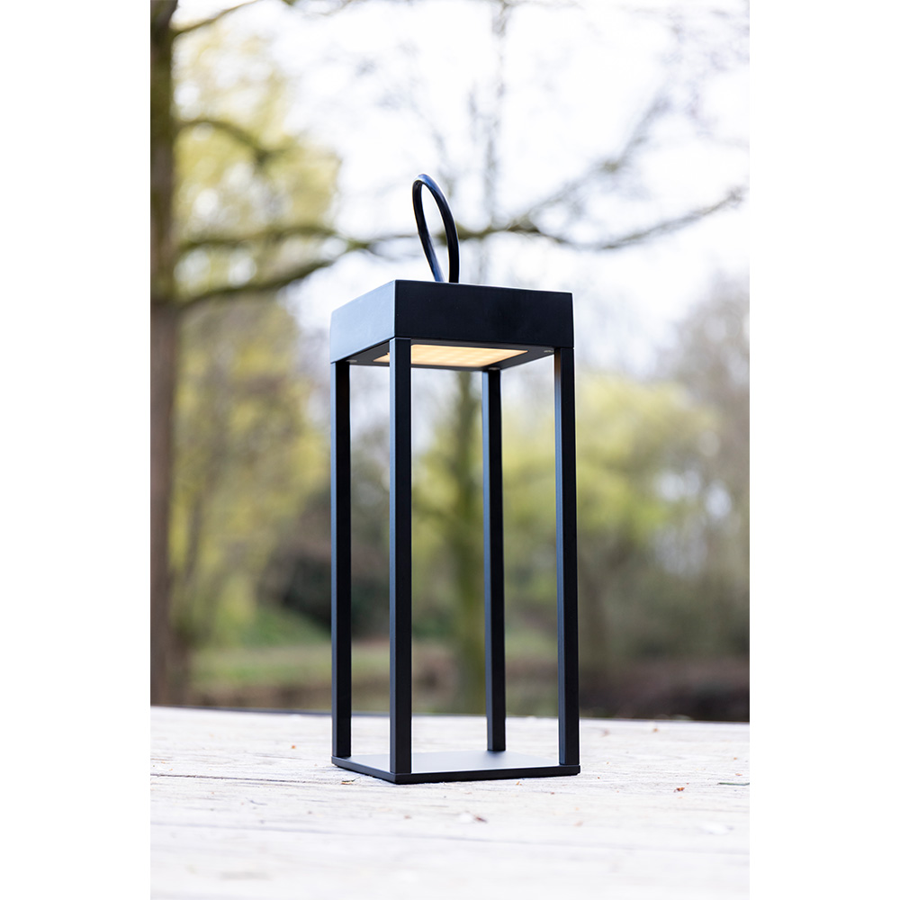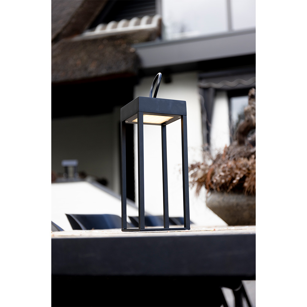 LED table lamp Larion nero - Lantern with a loop for hanging, for indoor and outdoor use - With built-in dimmer and USB-C charging function