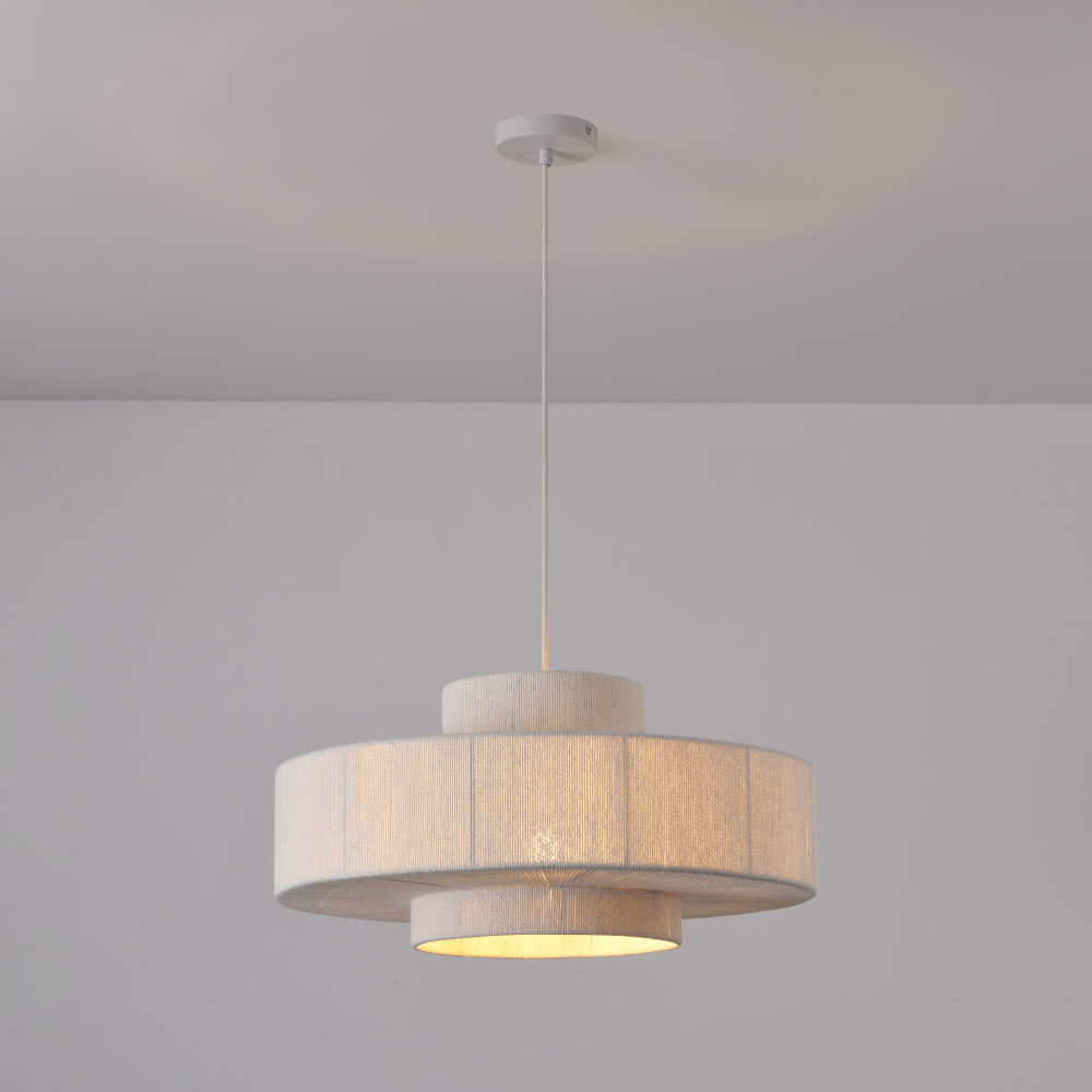 Pendant lamp Scandes bianco - E27 fitting - IP20 for indoor use - White - Braided cotton string - Three-layered