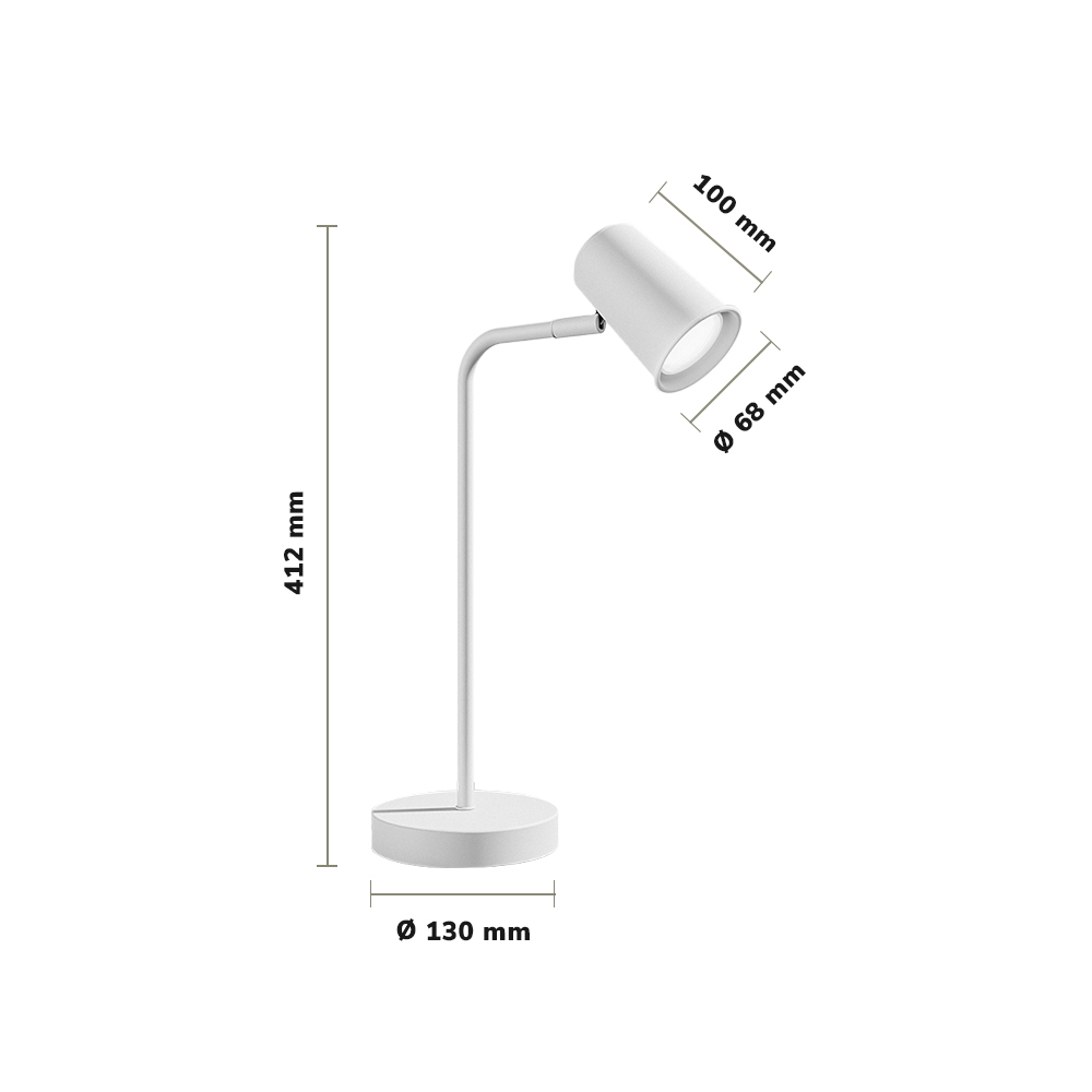 Riga - LED Table Light - 4 Watts 345 Lumens - 4000K Neutral White - Tilt and Swivel - Built-in Cord Dimmer - Desk Light - GU10 - IP20 for Indoor Use - White