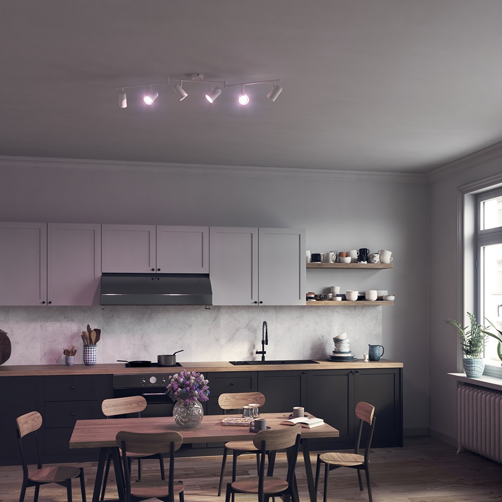 This Riga smart ceiling spotlight features dozens of smart functions and 16.5 million colors. You easily control the Riga via your smartphone, voice or light switch. Examples of the smart features include: grouping, fully infinite dimming, GEO-Fencing and location independent control. The Riga ceiling light is available in 3 colors: black, white and stainless steel. In addition, the ceiling light is available in three versions: 1-light, 2-light, 3-light and 6-light.